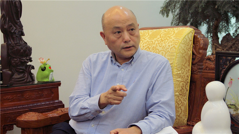 图为青蛙王子董事长李振辉介绍企业发展