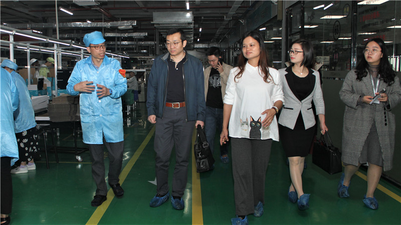 图为工作组参观青蛙王子生产车间