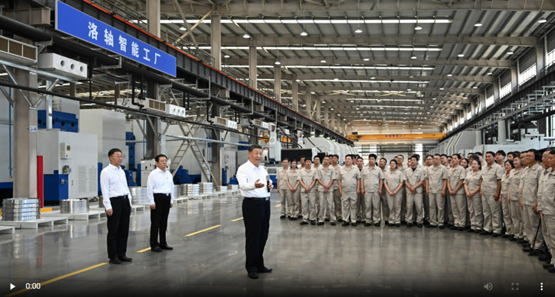 19日下午,习近平总书记来到河南洛阳轴承集团股份有限公司考察,走进企业智能工厂,了解各种类型轴承产品的性能和用途,察看智能生产线,并同企业职工亲切交谈。习近平说,我们坚持发展实业,从过去洋火、洋皂、洋铁等靠买进来,到现在成为工业门类最齐全的世界制造业第一大国,这条路走对了。我们要继续把制造业搞好,坚持自立自强,掌握关键核心技术,推进产学研一体化,培养大批高素质人才,这样中国式现代化才能够真正实现。